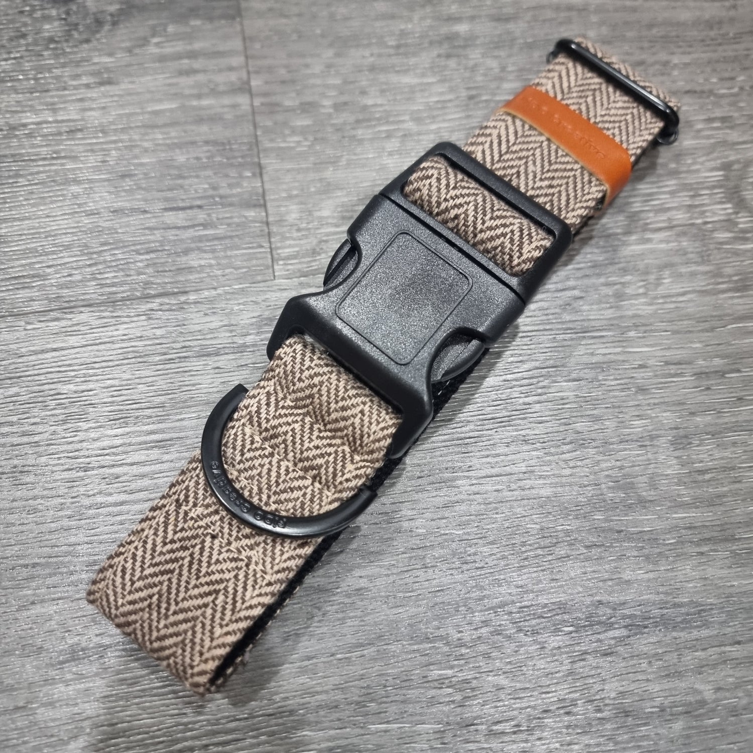 The coffee tweed Dog Collar, when your pup deserves security and style.