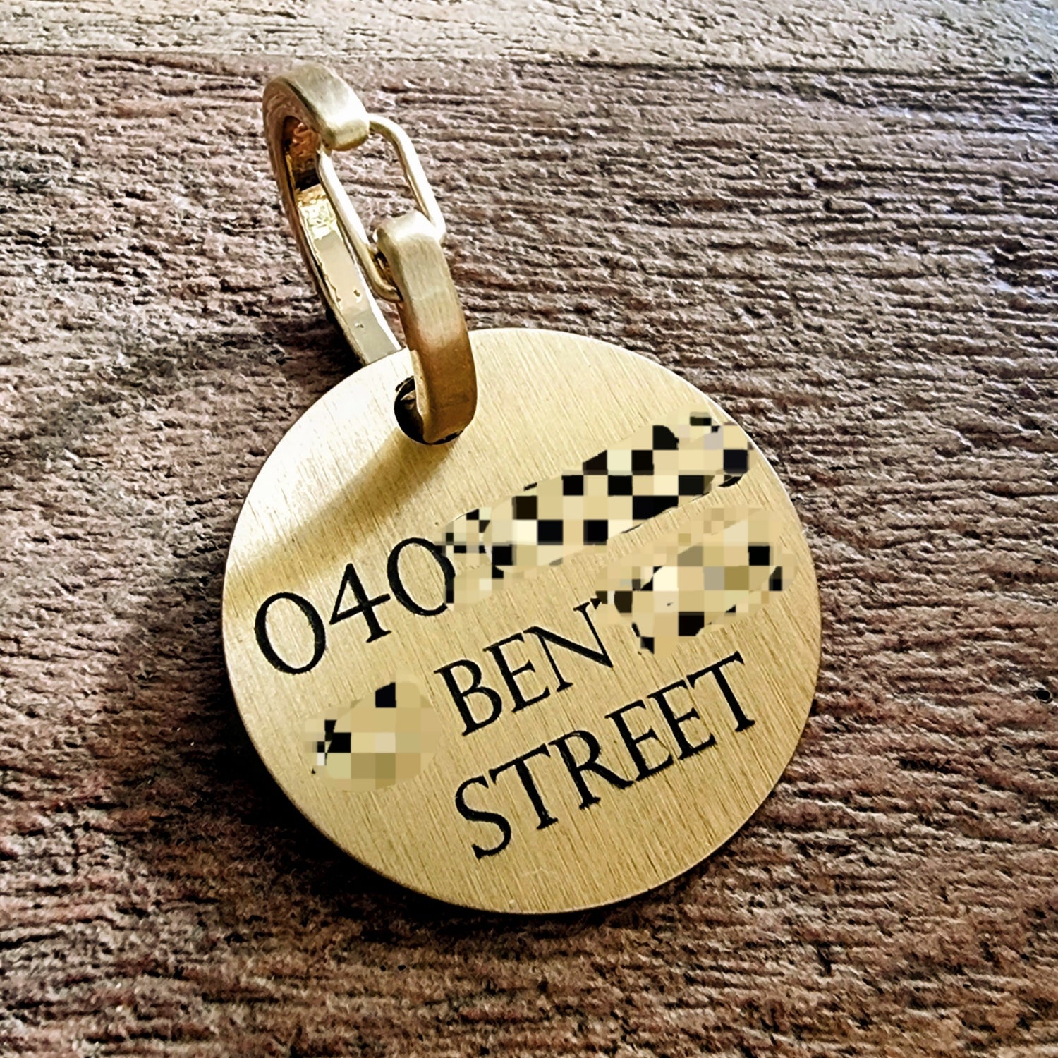 This beautifully detailed tag features an intricate floral burst framing your hound’s name, engraved with precision for a look that’s both meaningful and unmistakably stylish.