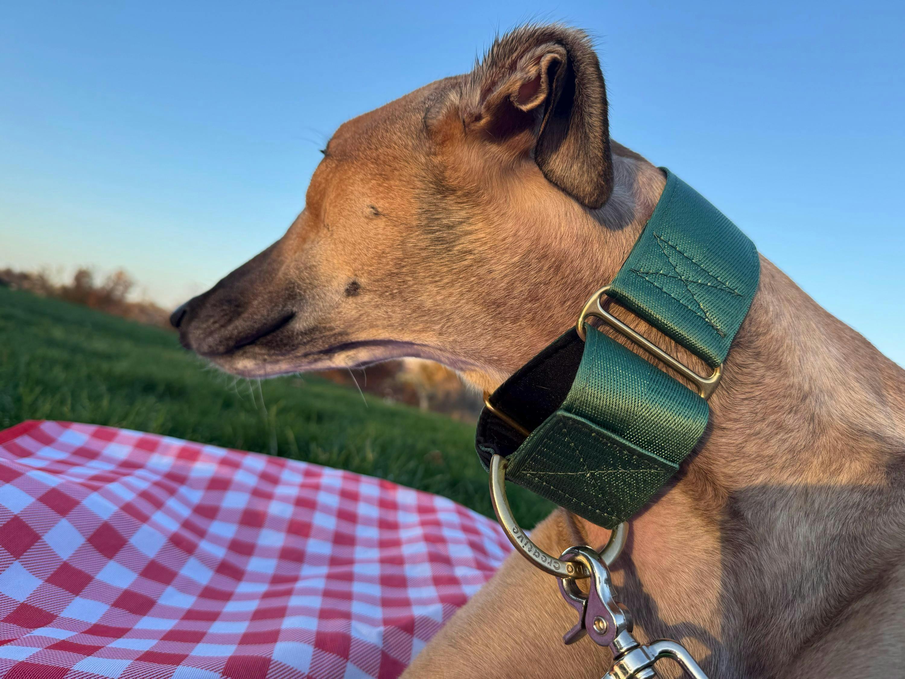 Say hello to the best Martingale collar your hound will ever wear. Whether your dog is a Greyhound, Whippet, or any breed really, this striking green collar will look amazing on any coat.