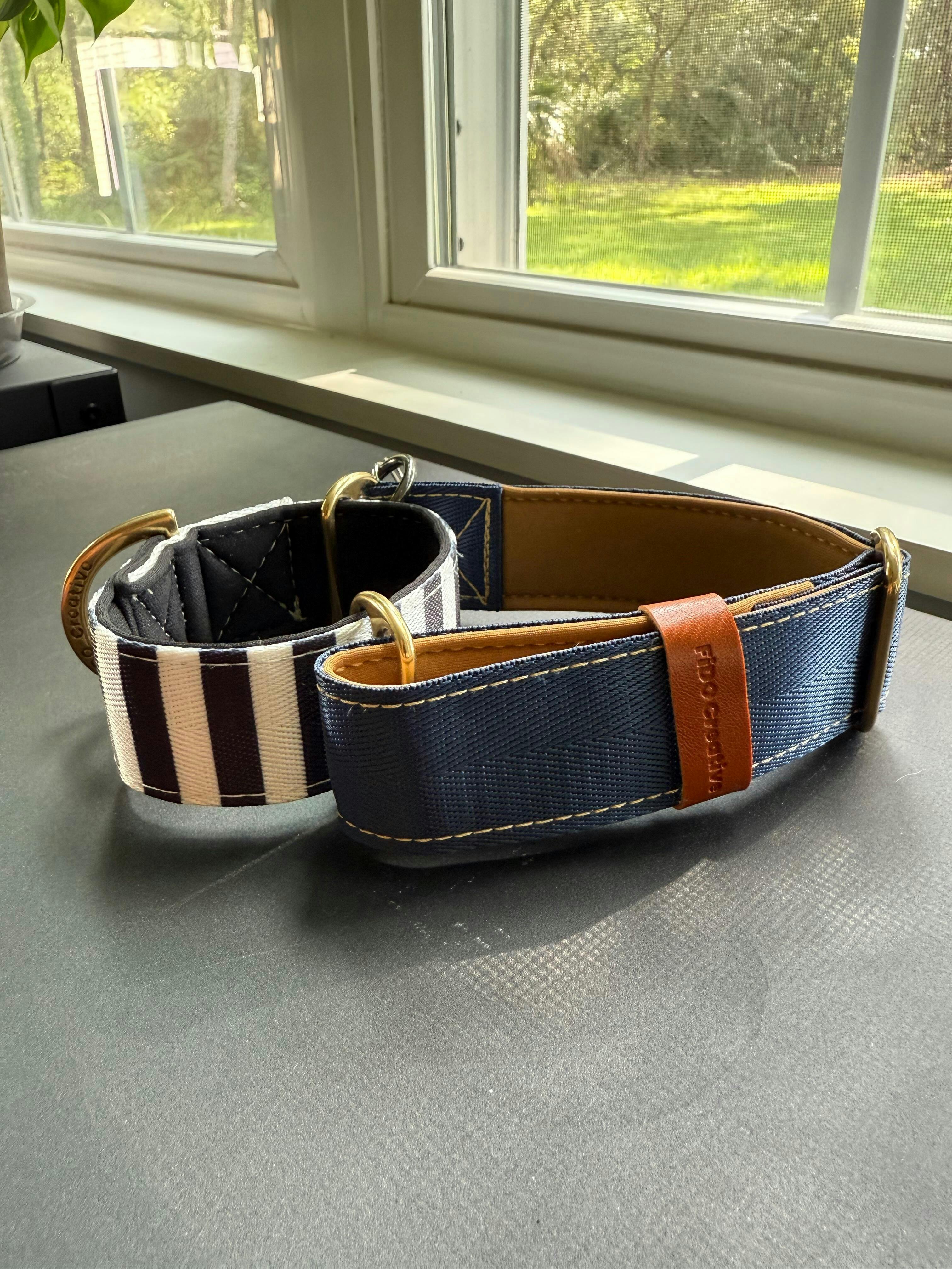 Bring timeless coastal style to your pup’s wardrobe with this handcrafted Nautical Stripe Martingale Collar. Designed and sewn by me in Australia, this collar combines style, comfort, and strength in one sleek design.