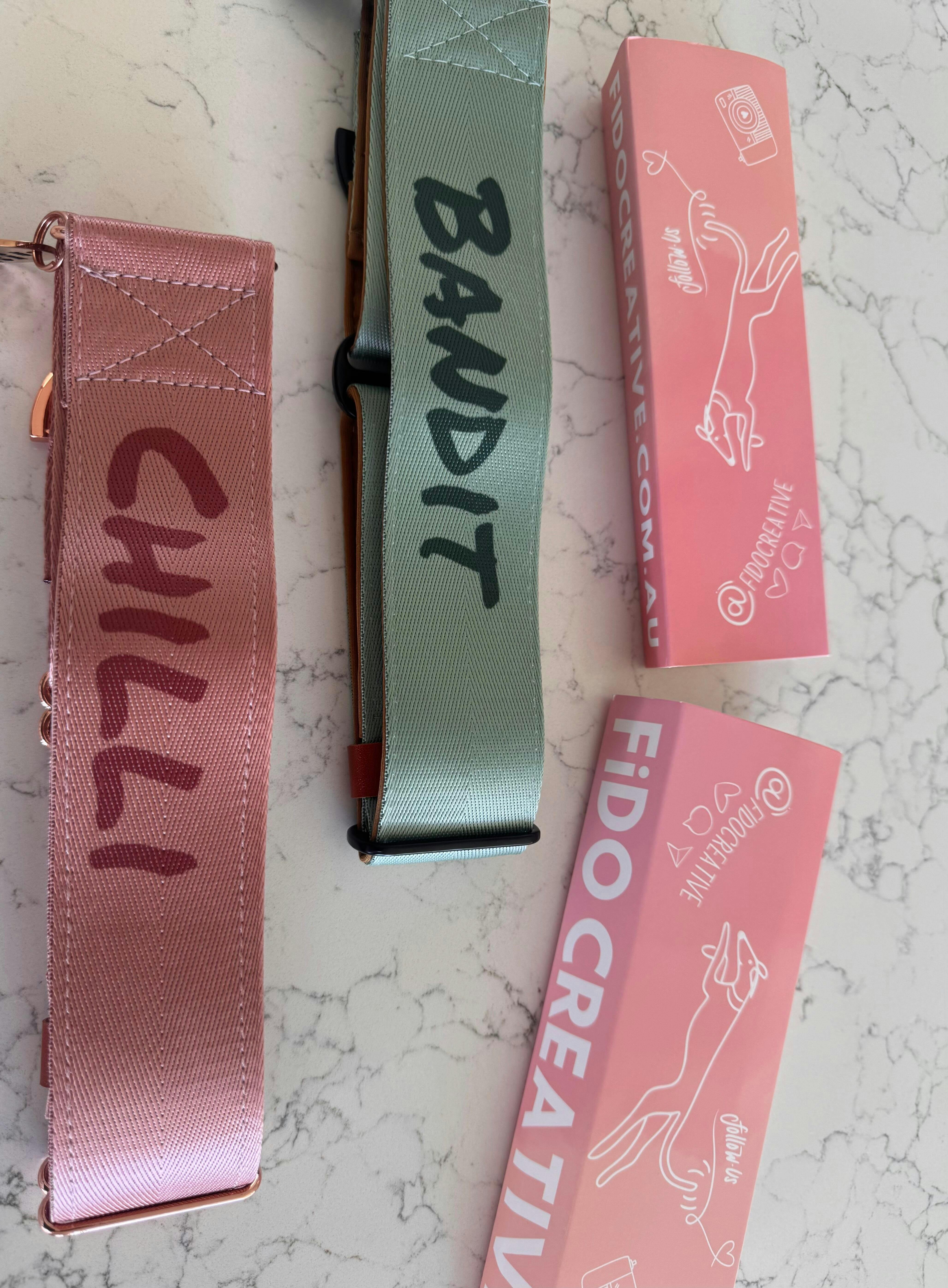 • (Psst—check the sizing guide! If the collar needs to be adjusted super tight, part of the name might get hidden under the slider.)