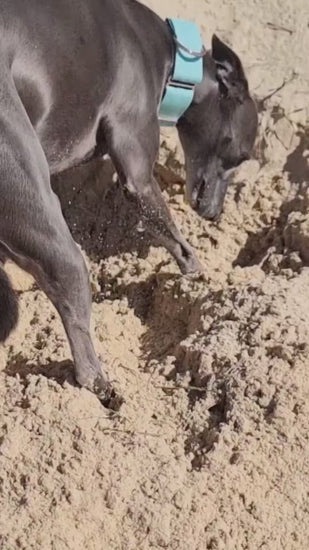 If your hound loves the salt water we recommend the solid brass hardware for longevity and always rinse in fresh water after those beach zoomies.