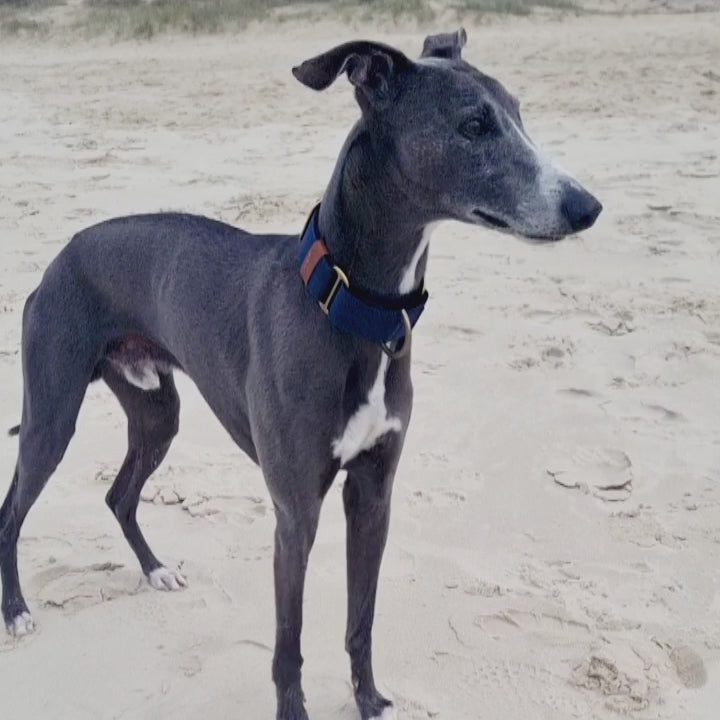 Navy blue martingale collar - Padded & Solid Brass hardware as standard